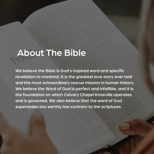 This Statement of Faith outlines our core beliefs about God, Jesus Christ, the Holy Spirit, and the authority and role of the Bible in guiding Calvary Knoxville on our mission to remain “Grounded, Growing, and Going” as a church family.